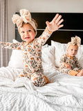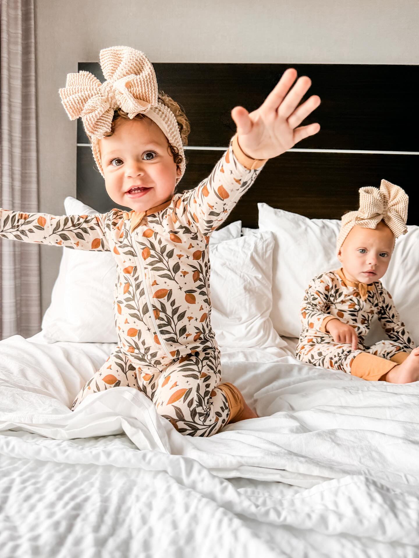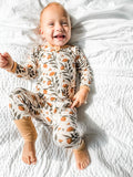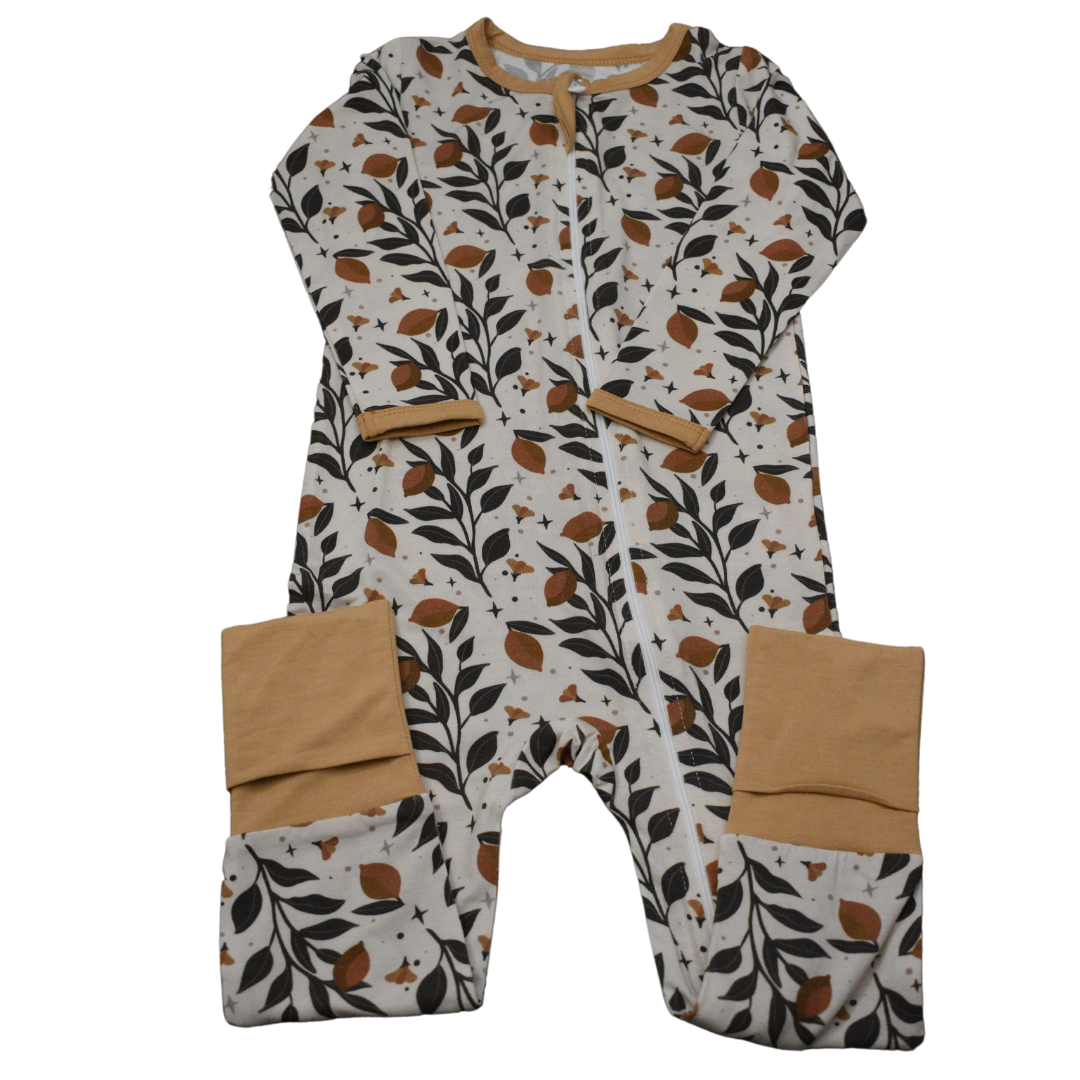 We are obsessed with our bamboo sleepers. The leaf print is the perfect edition to your child's sleepwear collection. Featuring a double zipper for easy diaper changed, fold over footies making it easy to switch from sleeper to romper. Our fold over function also allows for the sleeper to worn longer as when the child grows simply just let them wear it as a romper.