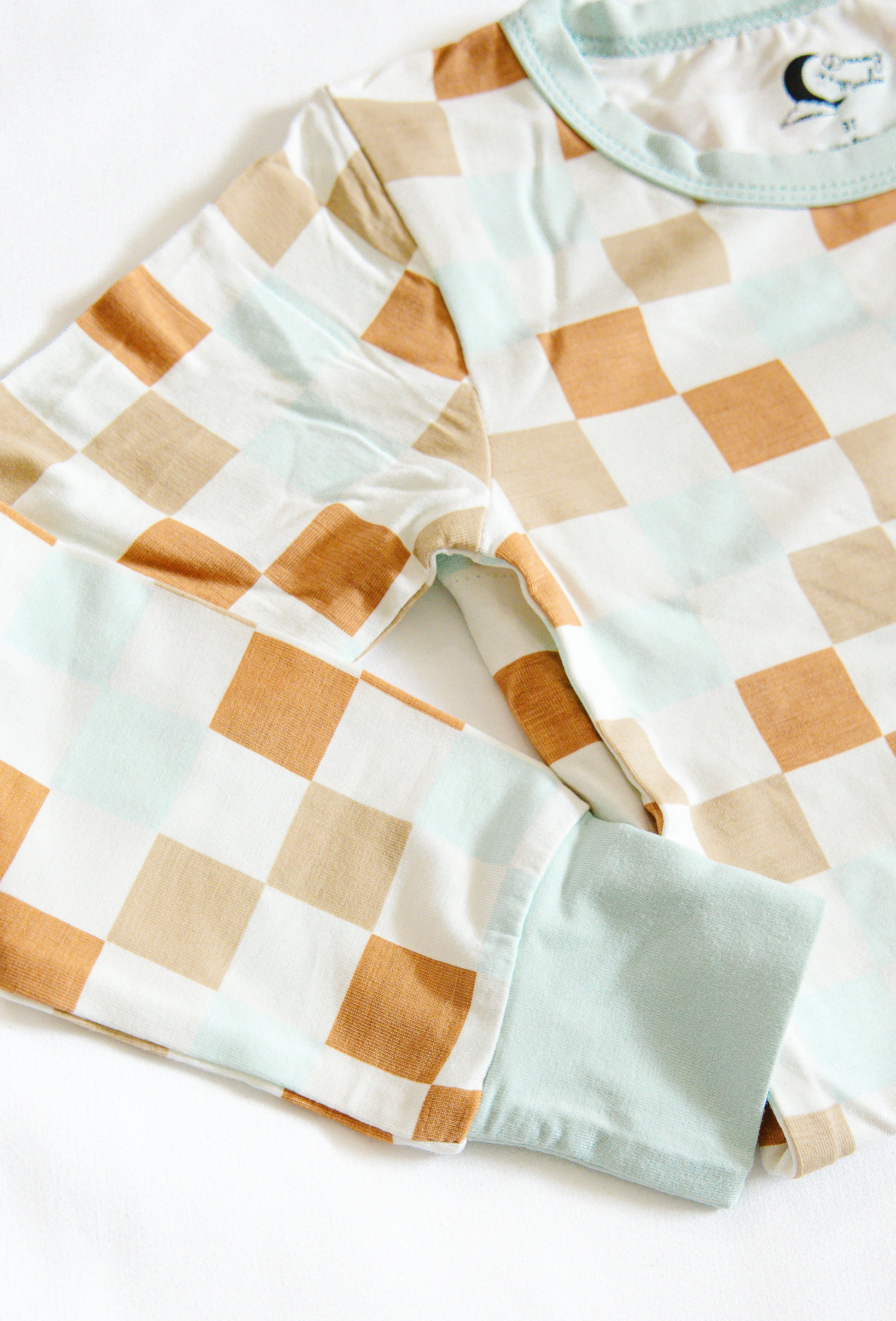 We are obsessed with our bamboo sleepers. The blue multi checkered print is the perfect edition to your child's sleepwear collection. These sleepers are incredibly soft and stretchy making them a staple for any Childs wardrobe.